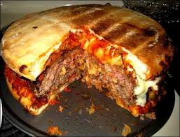 E poi tantissime altre come quella al chili, alle polpette, la pizza dessert, ma un vero spasso è il pizza burger che ti intasa le coronarie sì, ma non deve essere niente male. Consiste nell'utilizzare la pizza come panino già condita e poi aggiungere quello che vuoi più l'hamburger.